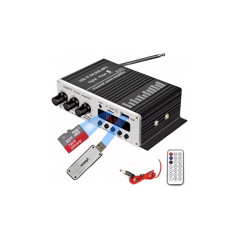 Amplificador Coche Moto Hogar 12V Fm USB Tf Bluetooth Aux Mp3
