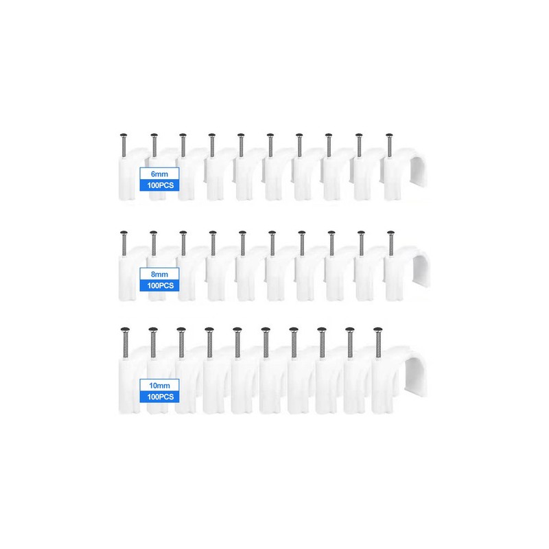 El paquete contiene 3 paquetes de 300 clips de pared para cables. (6mm*100PCS,8 mm*100PCS,10mm*100PCS) Más ordenado: cuando utilices pinzas para cables para ordenar tus cables, notarás un entorno más ordenado Materiales de calidad:Nuestros clips de acabado de cables están fabricados con plástico de alta calidad y acero duradero. Esto significa que los clips no se rompen con facilidad y que las púas de acero no se doblan con facilidad. Fácil de usar: La instalación de los clips de alambre es muy sencilla y sólo requiere 4 pasos. 1. elija el clip de alambre adecuado 2. pase el alambre por el arco del clip 3. elija la posición deseada 4. fije el clavo con un martillo Amplia gama de aplicaciones:Los clips de pared para cables son adecuados para cualquier cable en hogares, oficinas, cibercafés, etc. para guiar cables desordenados. También es una buena idea fijar ristras de luces con diferentes formas. ------------------------------------------------------------------------------