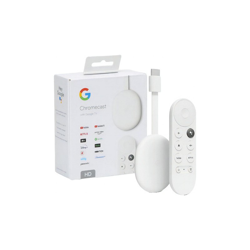 Chromecast con Google TV – Full HD – Google TV – Incluye Control Remoto – Blanco – GA03131-US – Reproductor Multimedia Wi-Fi - NO INCLUYE FUENTE DE ALIMENTACIÓN - NO INCLUYE PILAS.