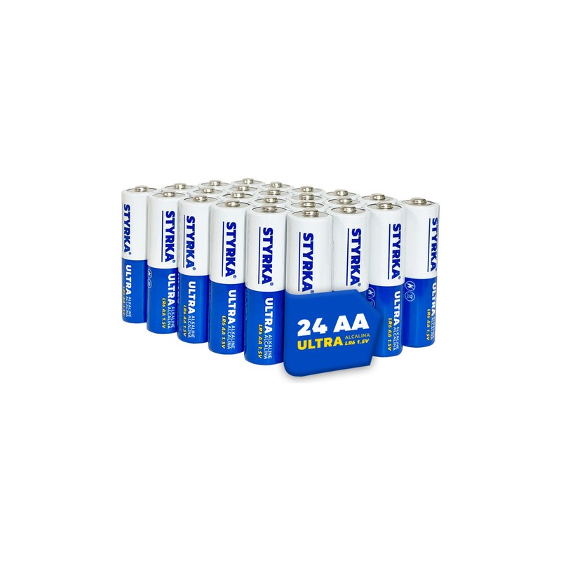 • Paquete de 24 pilas alcalinas AA de 1,5 voltios de potencia.