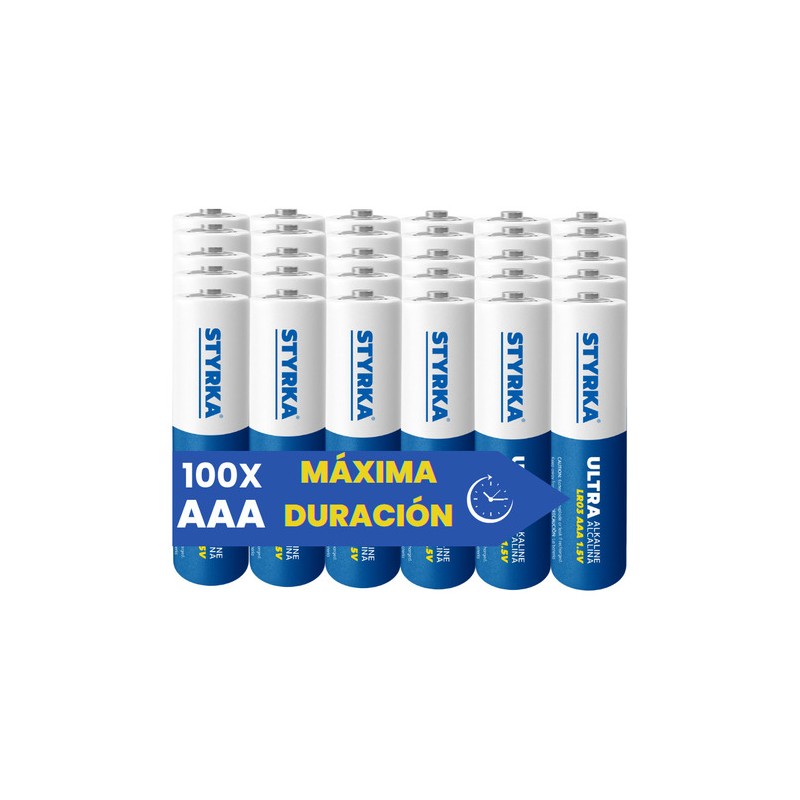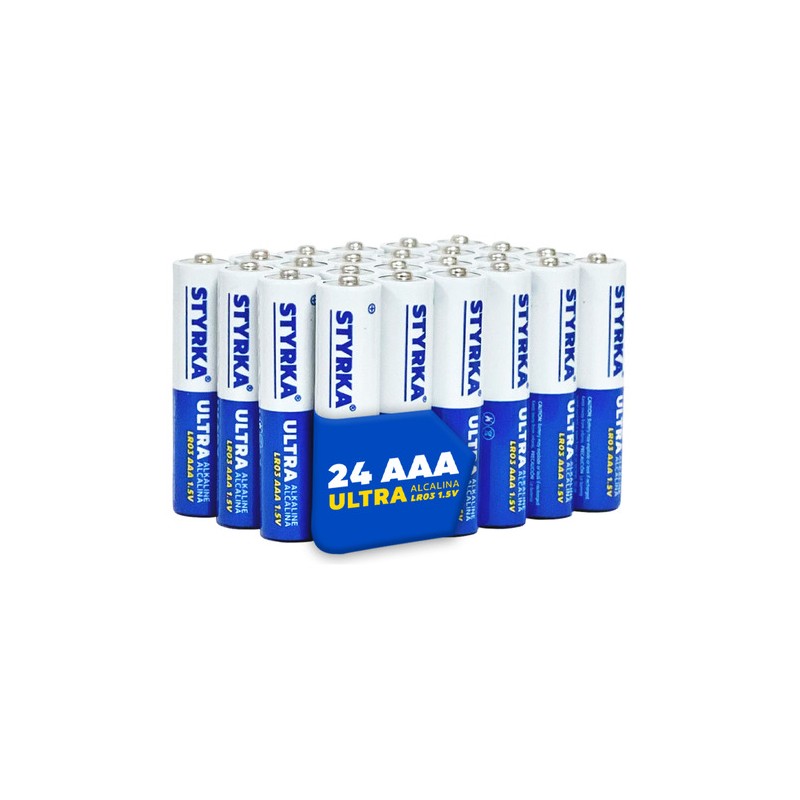 • Contiene 24 pilas alcalinas AAA de 1,5 voltios de potencia en un paquete práctico.